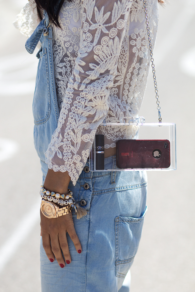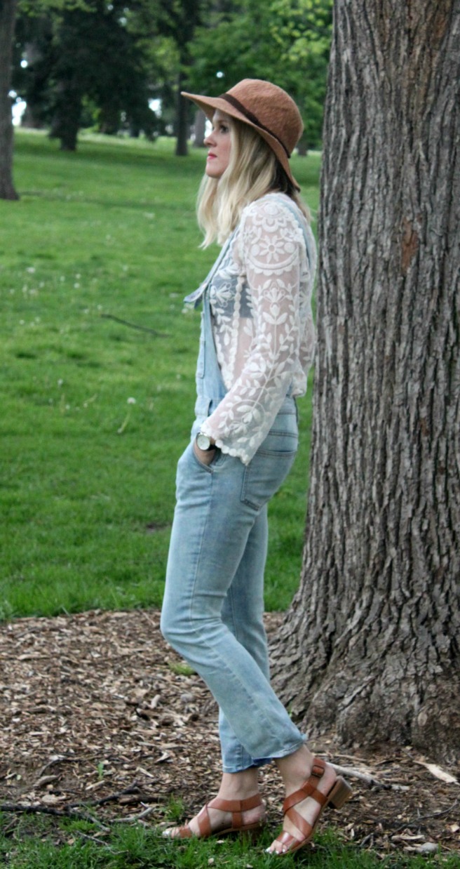 I loved overalls in 1995, and it’s no different 20 years later (20? already?). Paired with lace, they break the juvenile look and are totally wearable in a trendy way. This look was inspired by the following photo: