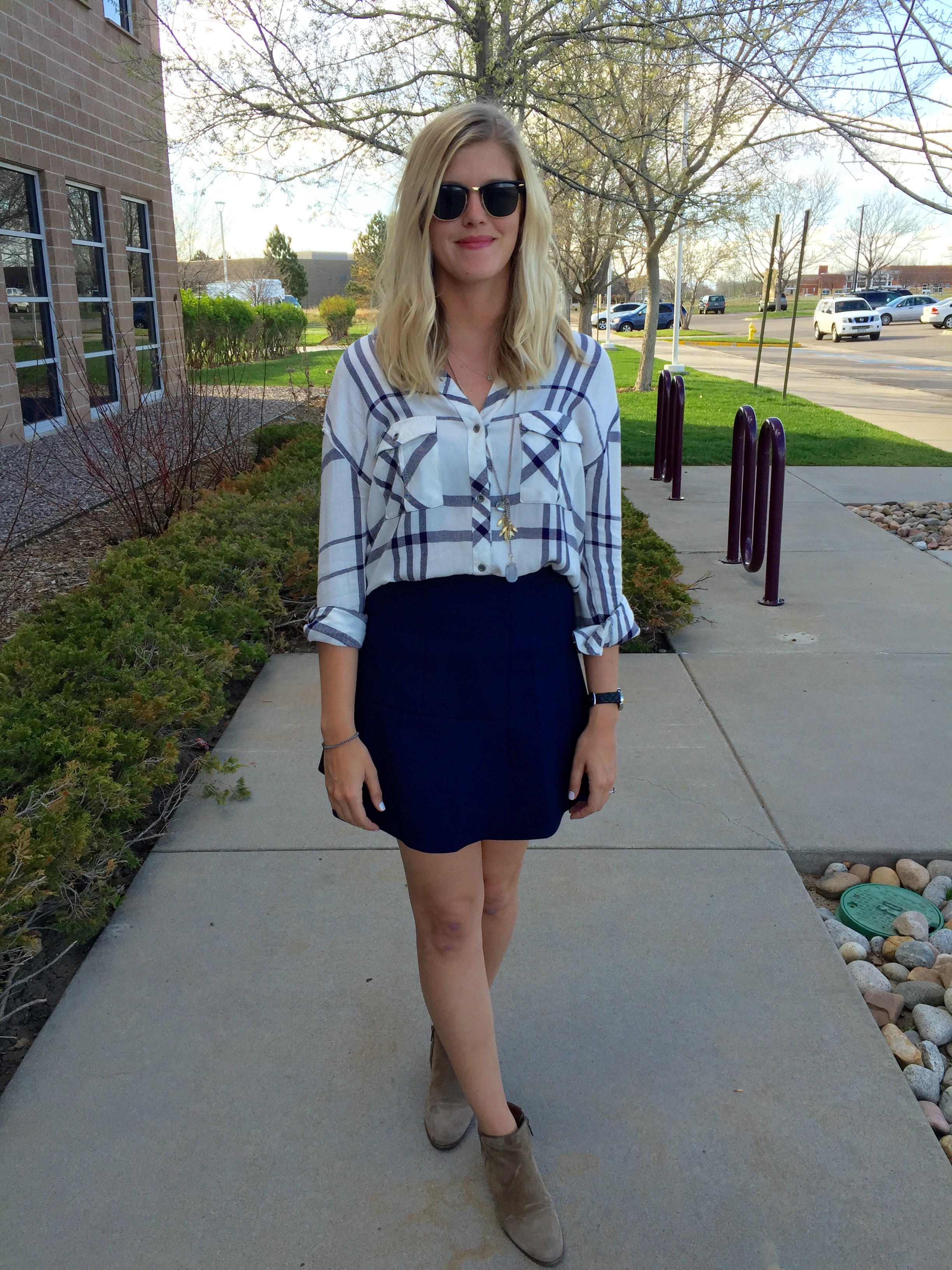 I love stealing other bloggers’ looks, and this is no exception. When I saw this photo of Arielle from Something Navy, I knew I had finally found a way to style my Rails shirt in a way that’s suitable for work.