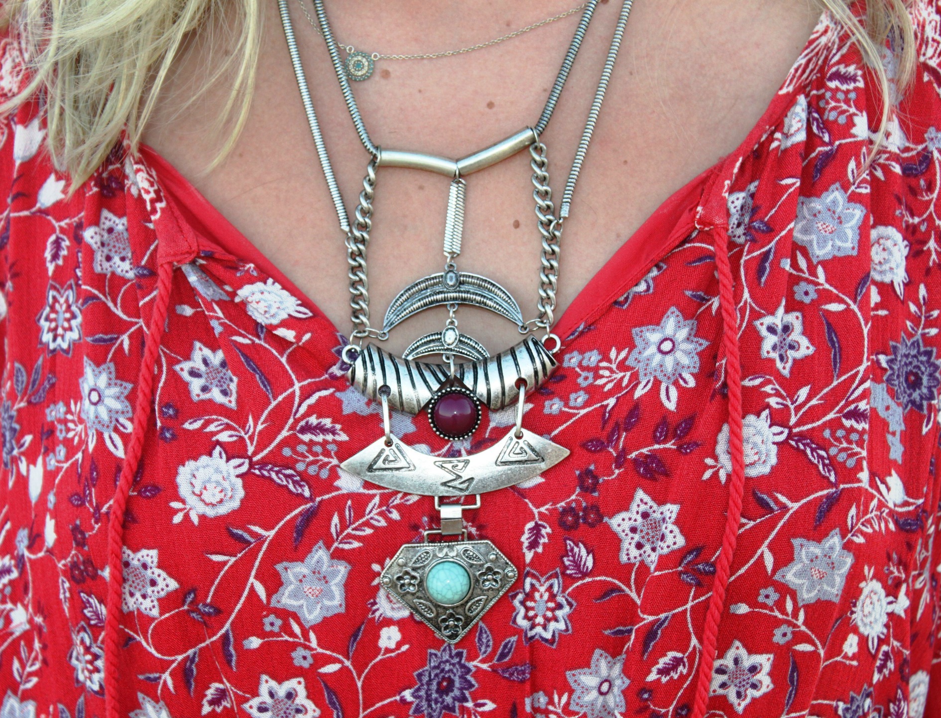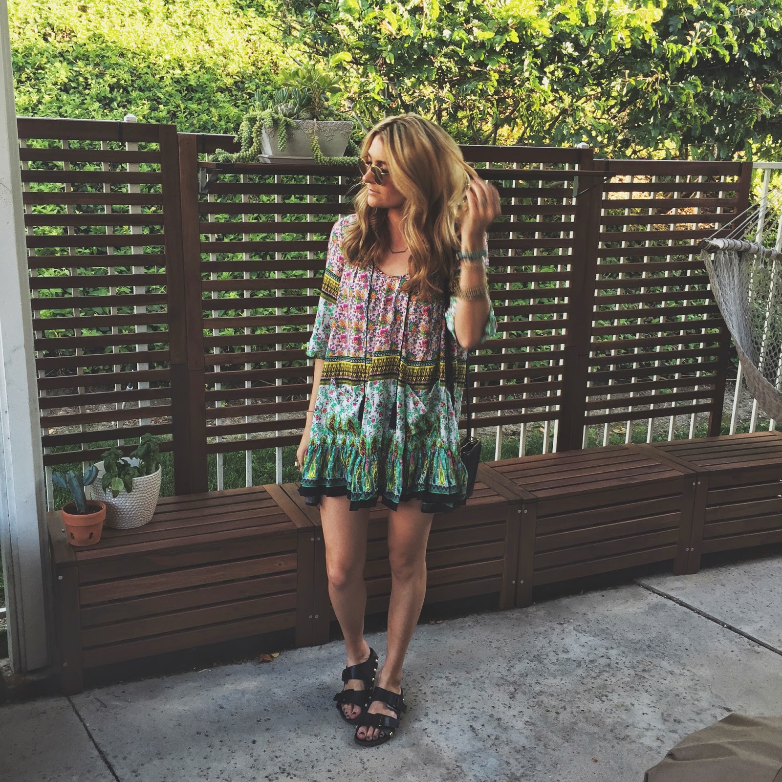 Dress: Free People, Necklace: Urban Outfitters (sold out, similar here), Sunglasses: Nordstrom (sold out, similar here).