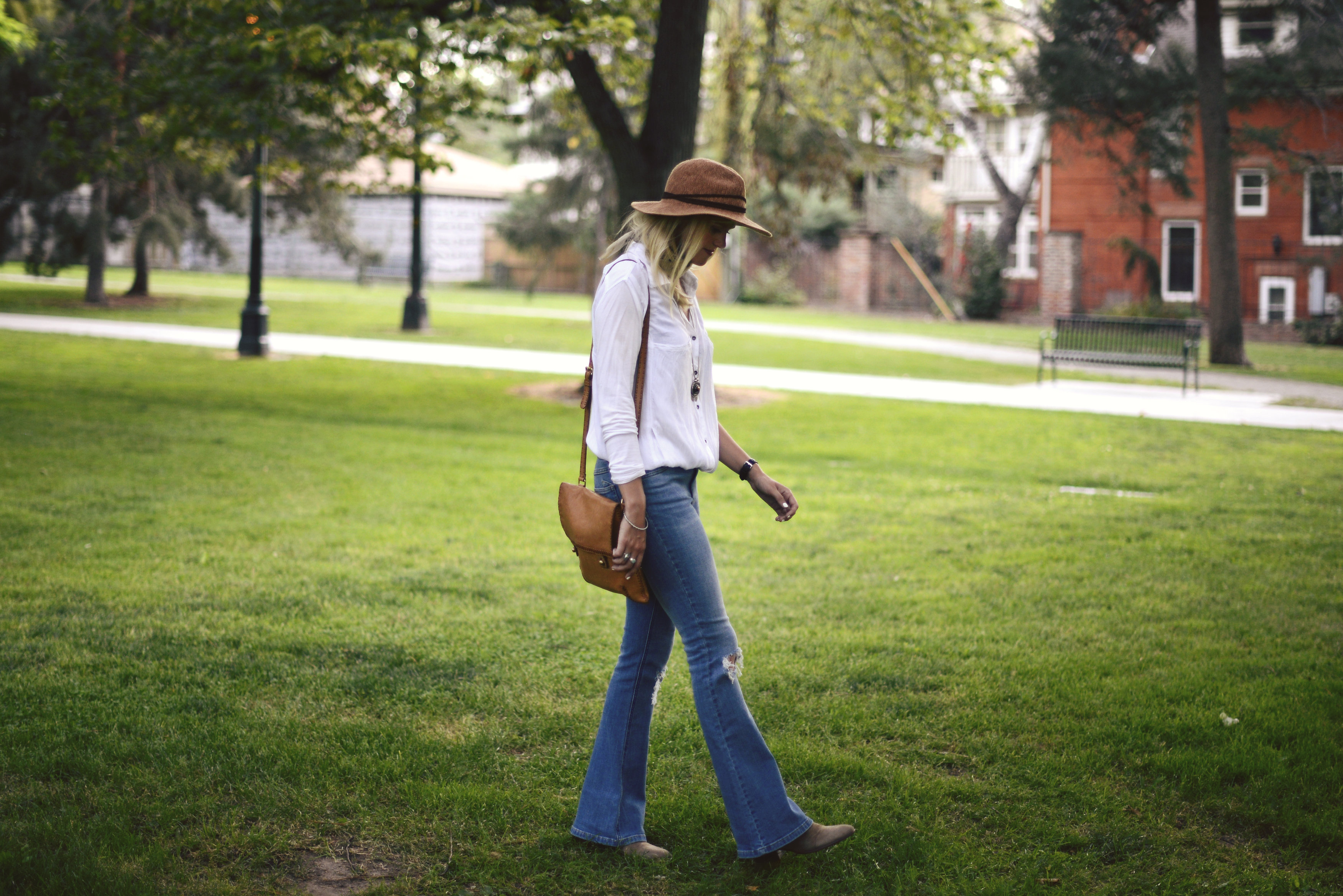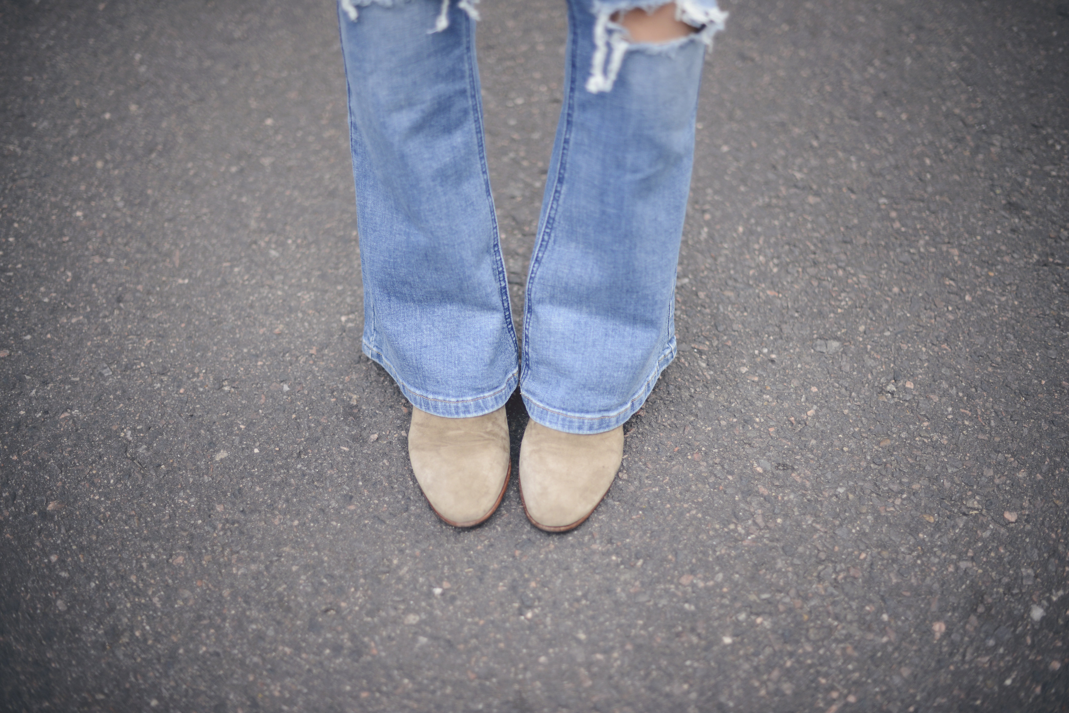 I think the key is to wear them with a flowy top that’s tucked in. It’s counterintuitive, but it gives the whole outfit a boho flair that’s on point. Wearing the right shoes is also paramount, as you don’t want your jeans to drag on the ground.