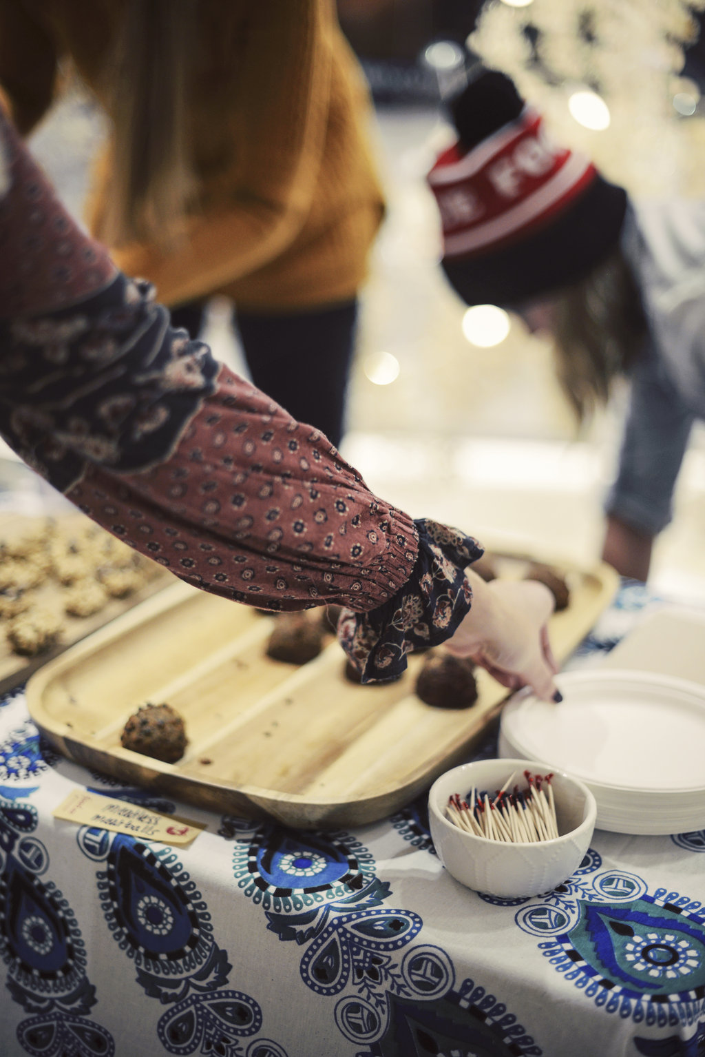 As Free People is promoting a healthy lifestyle, the choice of snacks and refreshments was more than appropriate: meatless meatballs, handmade granola balls and delicious fresh juices with ginger and spices.
