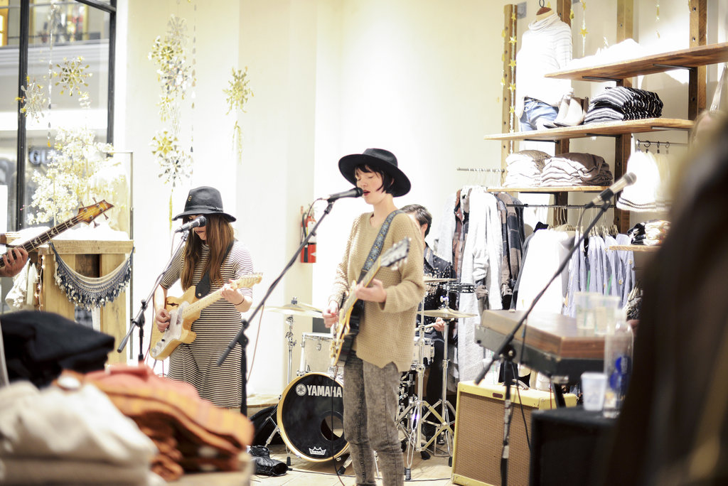 If you read this blog I’m sure you already know that I live in Free People clothes. I love their products, but I also love the brand in general. They’re very interactive with their customers and as much as possible, try to create a community by engaging their consumers in numerous activities: their FPxME platform through their app, their review system, their FPME activities and retreats and their blog, Building 25 (which refers to the location of their home office in Philadelphia). Through their blog and social platforms, they promote a healthy lifestyle by discussing healthy food, an adventurous lifestyle, yoga and exercise and the beauty in little things. Their popularity cannot be denied as they just opened up a new store in Cherry Creek (Denver), 7 times the size of their previous space. This makes this store the second biggest one in North America. Such an event inevitably called for an opening party, which I attended on November 6th. _DSC7846 (1)They really worked hard to make the ambiance festive with a cool band and decorations that the store employees worked extremely hard to put in place. This surely put me in the mood for the holidays (isn’t it crazy how going to the mall in November can have such an impact on you!). _DSC7843_DSC7844_DSC7734